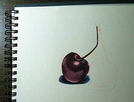 這次練習是以prismacolor上色,完成左邊的櫻桃後,原本想用好賓色鉛稍作修飾,
