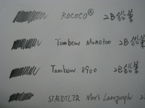 前陣子與色鉛同好bm7大提到2b鉛筆的話題時,bm7推薦了兩款風評不錯的鉛筆,於是便入手了Tombow兩款2B鉛筆,Tombow Mono 100與懷舊鉛筆 8900。又同時買了一枝神秘的ROCOCO 2B鉛筆。這枝ROCOCO 2B鉛筆挺奇妙的,總是感覺似曾相識?網路上找不到這枝鉛筆的相關資料,但是發現Rococo與Lyra art design鉛筆的外表上有著高度的相似性,Rococo鉛筆編號為666,而Lyra art design為669。莫非……是仿製品或是代工鉛筆,有待查證…