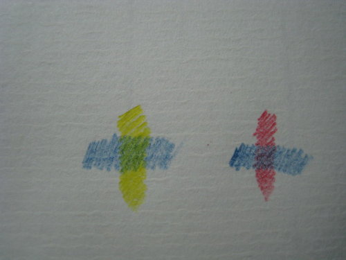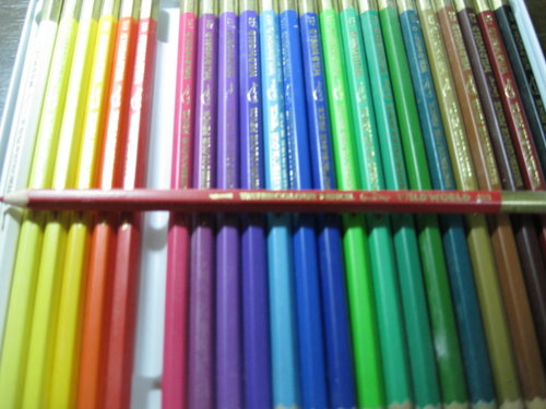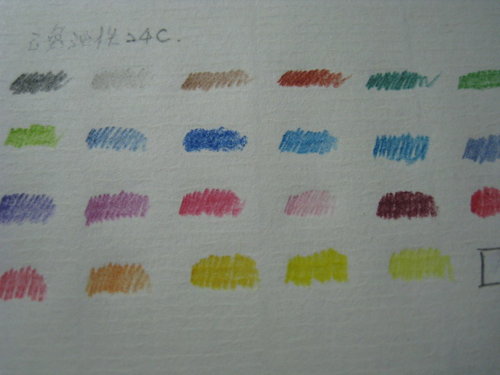 至於試畫後的感想,嗯…油性色鉛筆的蠟質感很重,建議使用表面粗糙的紙張會稍微比較好疊色,"完全"不適合以光滑表面的紙張塗畫。24色各色的筆芯軟硬度及顯色性不一,而且塗在紙上有結塊的情形。這套色鉛筆或可純粹作為兒時回憶而購買收藏,但若作為繪圖用途,我感覺這色鉛筆還有非常巨大的進步空間。