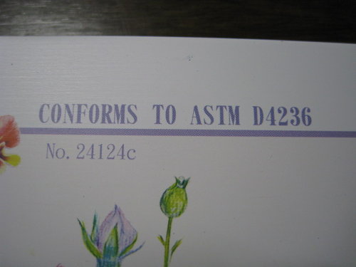 水性色鉛筆外盒標示著符合歐洲CE標準,讓我意外的是油性色鉛筆外盒標示符合ASTM D4236耶!