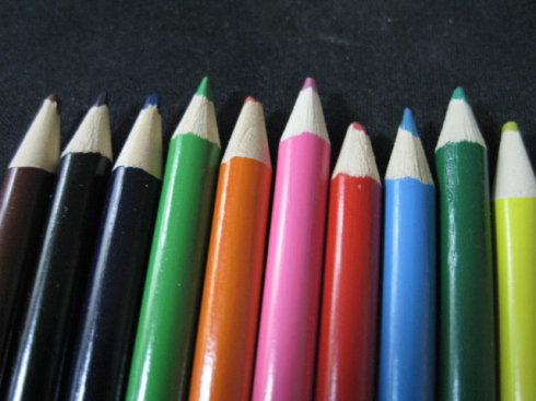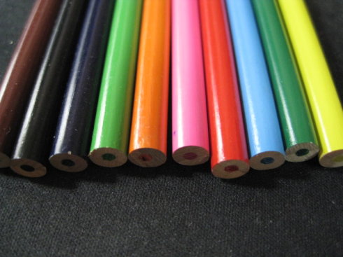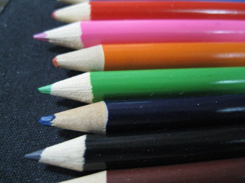 我的著色本附贈色鉛筆早都已經丟掉了,記憶中這一類難用的色鉛筆,筆芯都很細(跟一般寫字鉛筆差不多),削過外露的筆桿木頭密度低而顏色蒼白,有點像免洗筷。