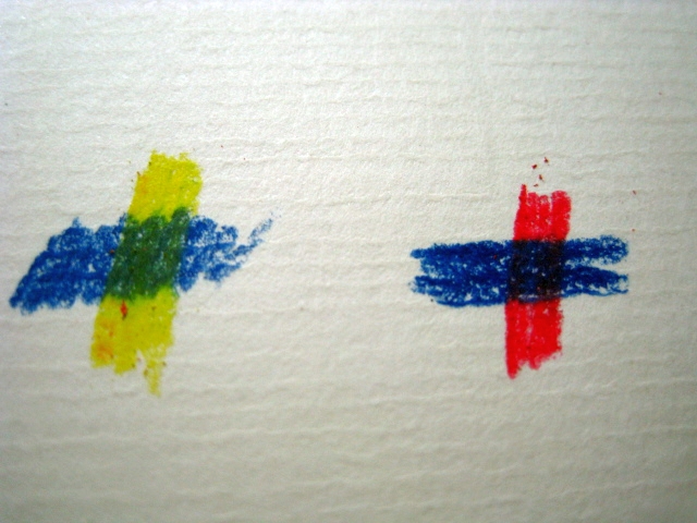 平滑的紙張非常明顯,而表面較有紋理的ingres paper的色塊情形稍微好些,但也只是沒有平滑表面紙張那麼誇張而已。另外雖然畫起來的感覺有點蠟的黏膩感,但筆屑稍多。