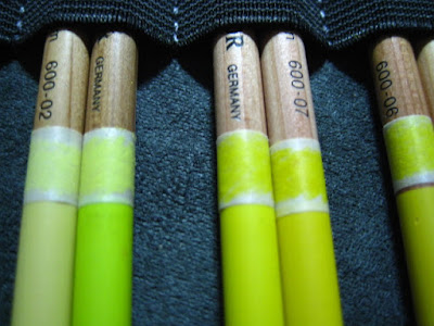 試了三種:lyra 油性、P牌、卡達水色鉛都可以喔!而且用橡皮擦可以擦乾淨。這應該也可以拿來當懶人式色卡,比較不必擔心殘膠的問題。