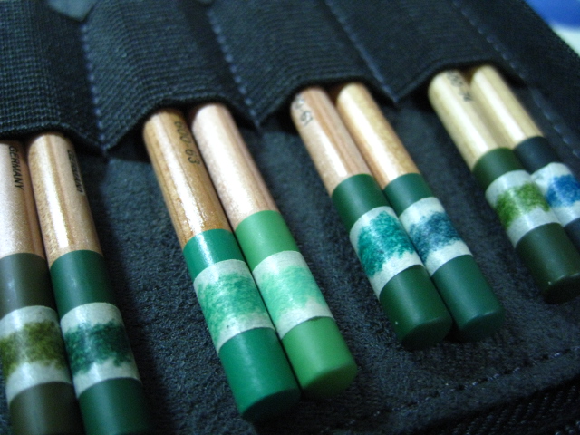 不過你的色鉛筆要不要改成同一孔裡筆頭筆尾相反向的方式置放?不然時日一久相緊鄰的紙膠帶色卡會因為摩擦而掉色混色造成失準。
