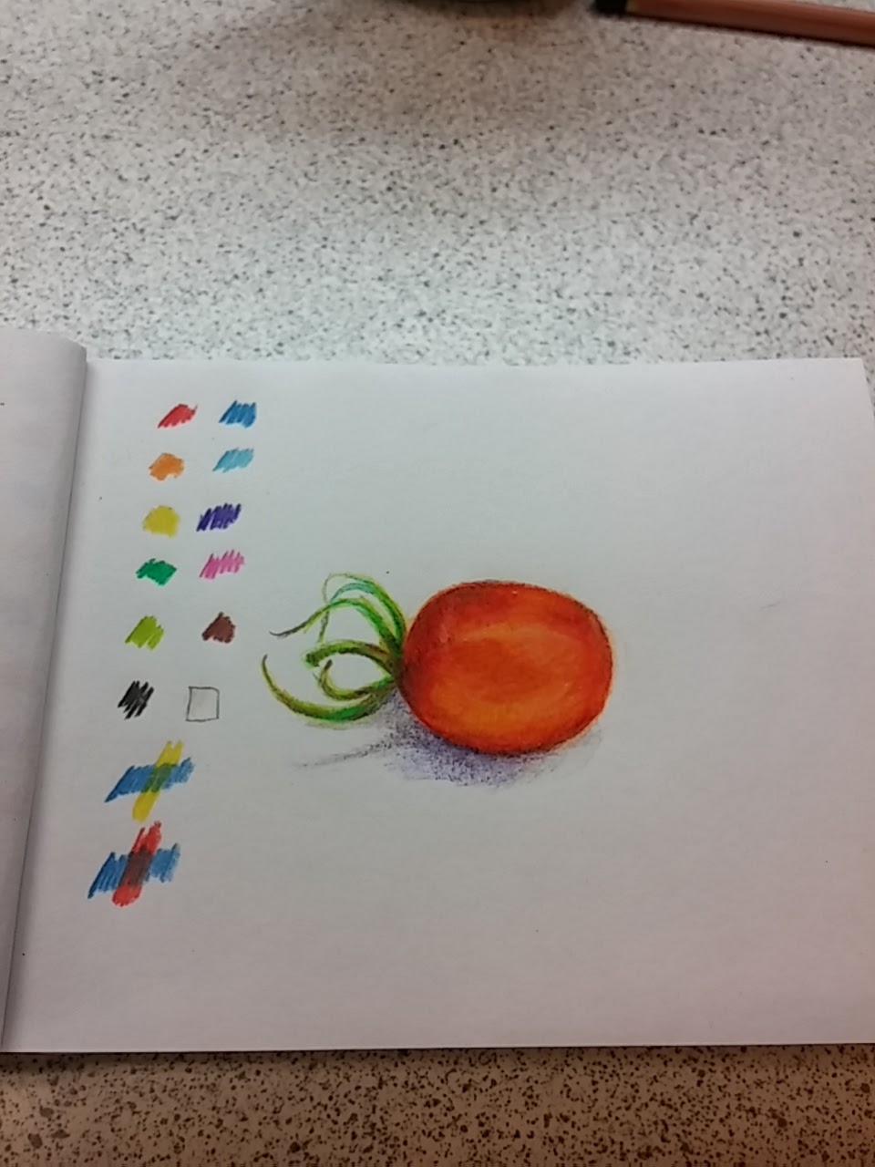 是這款色鉛筆沒辦法用削筆器削尖,我自己是用刀片將筆尖削成想要的角度來畫。加上因為只有12色,所以大概就最適合用來隨意地塗鴉了。疊色方面也尚可,雖