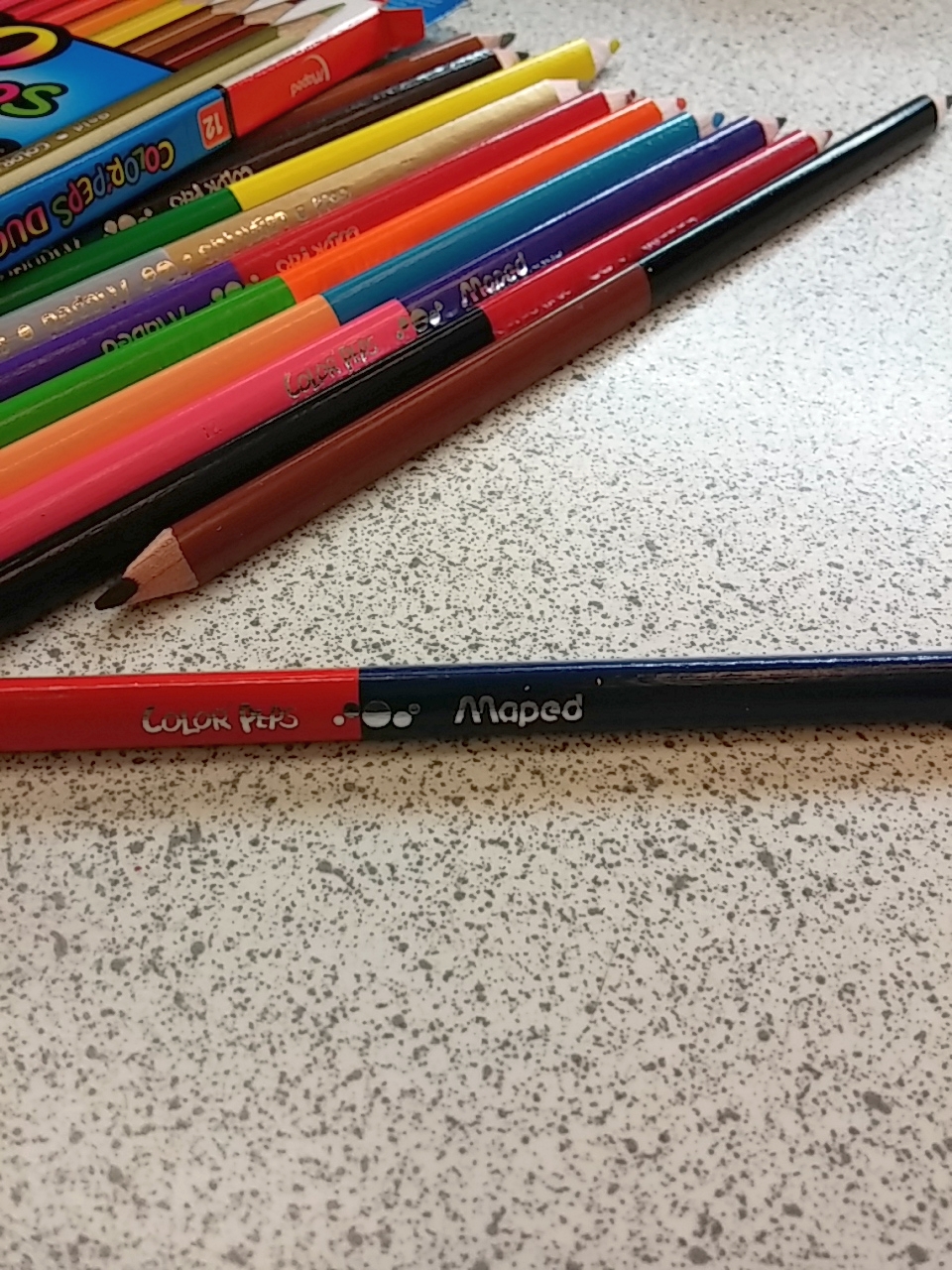 不過畢竟是給學童用的色鉛,像之前買過的可優蠟Crayola色鉛筆一樣,雖然兩者的 顏色都滿鮮艷地,但是疊色性就不怎樣了…。單純塗鴉疊一、兩層顏色的話還行,但是多層疊色的話就有點難度了。另外Maped和Crayola色鉛筆筆桿的 木質比較之下,我覺得Maped的筆桿比較精緻,而疊色性方面來說,Maped色鉛似乎略優於Crayola。(ps.目前無法提供Crayola色鉛的 照片,因為當時試畫後就直接送人了:P)