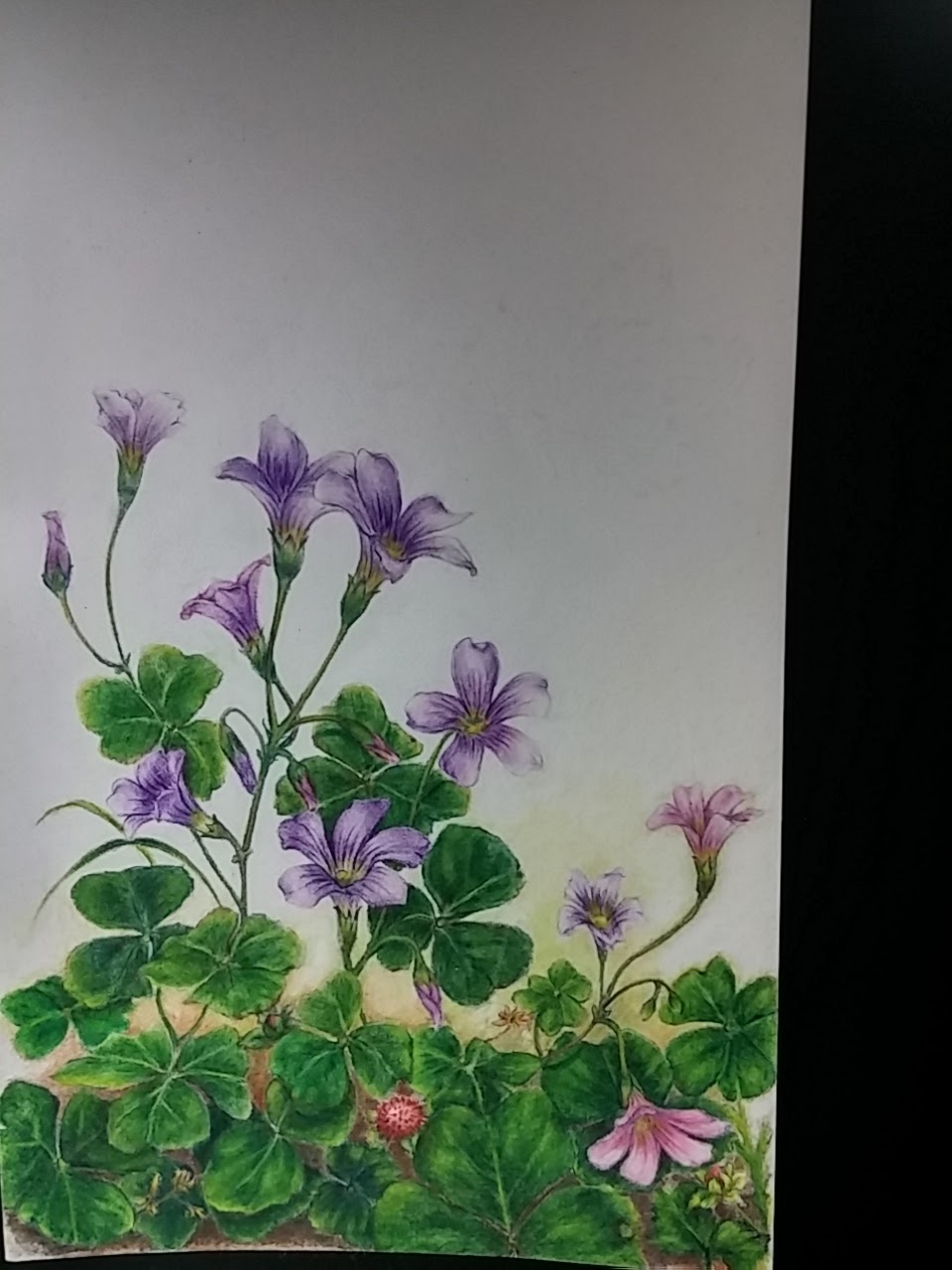 小小的花朵看起來很惹人憐愛。因此產生把這種很普遍的紫色小花畫下來的想法。