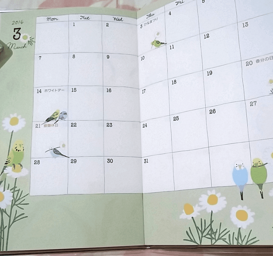 Midori小鳥口袋日誌因為裡面的小鳥圖案很可愛而且本子小重量輕,幾乎是這幾年每年都會買的手帳,雖然只有月記事欄位+年度計畫表,不過記個重要的事項提醒也差不多了,年度計畫我都用來紀錄體重變化,雖然一直呈現穩定成長狀態…